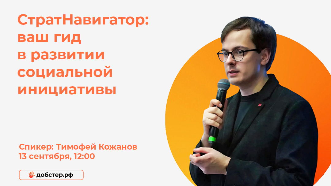 Спикер — Тимофей Кожанов, руководитель благотворительной платформы Добстер.рф.